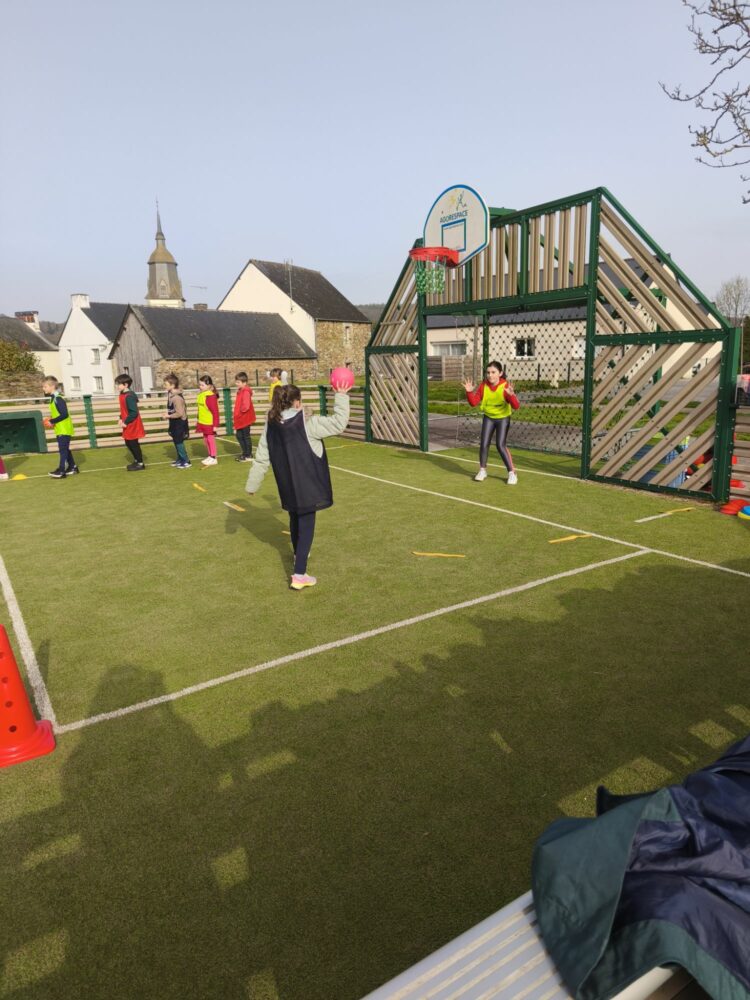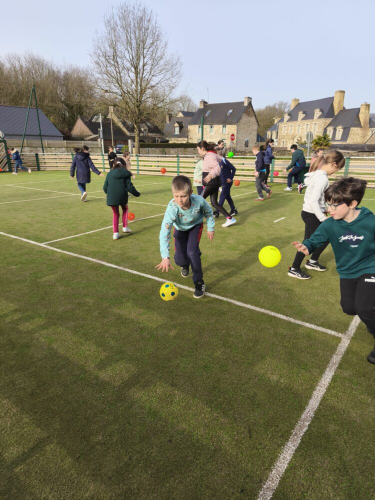 Les élèves de CE-CM bénéficient actuellement d’un cycle de handball organisé par l’UGSEL 22 en partenariat avec le club Armor Club Handball La Motte.