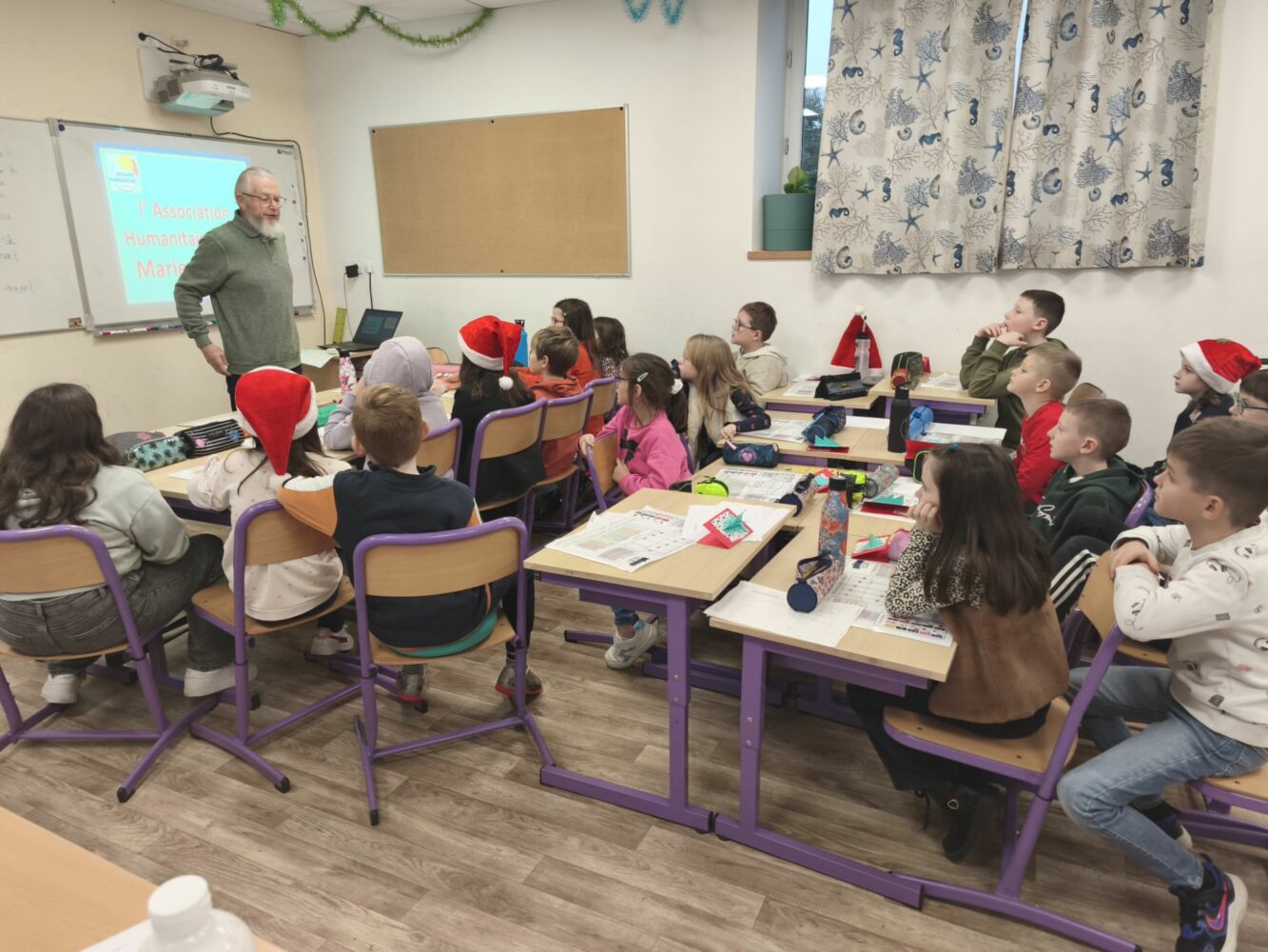 Dans ce cadre, les élèves ont eu la chance de recevoir la visite de Marc Boulbin, responsable de l’antenne bretonne de l’association humanitaire Sœur Marie-Colette. À travers son intervention, il a expliqué les conditions de vie des enfants aidés par l’association ainsi que leurs besoins quotidiens, permettant aux élèves de mieux comprendre l’importance de leur engagement.