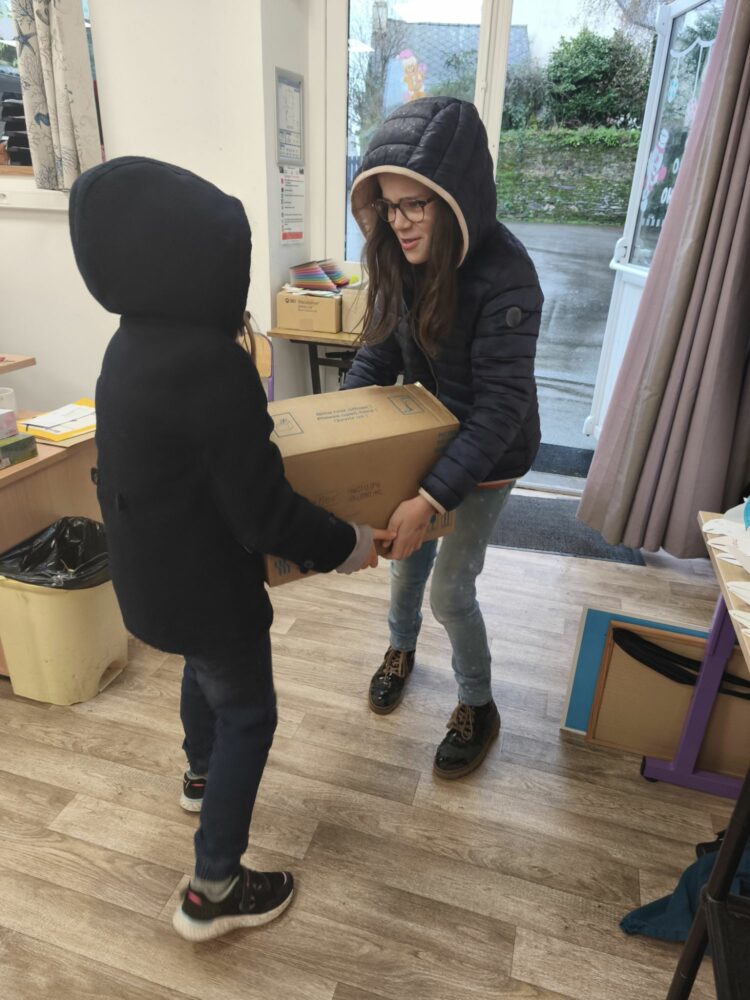 Le mardi 16 décembre, malgré une météo peu clémente, les élèves de Saint-Thélo ont fait preuve d’un bel enthousiasme et d’une grande détermination. Ils ont rempli les cartons de dons et les ont transportés jusqu’au véhicule destiné à leur acheminement.