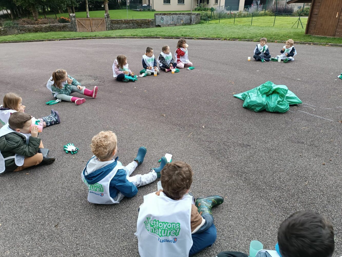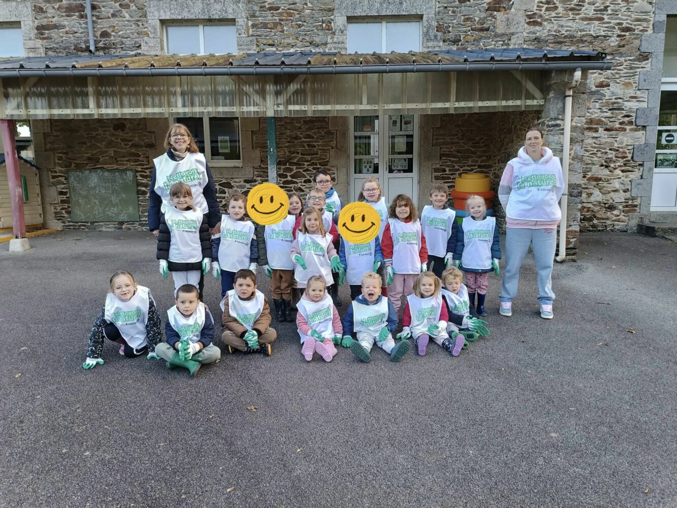 Les élèves de PS, MS, GS et CP ont participé à l’opération « Nettoyons la nature ». Après avoir ramassé les déchets présents dans Le Quillio, ils ont partagé un goûter bien mérité tous ensemble.